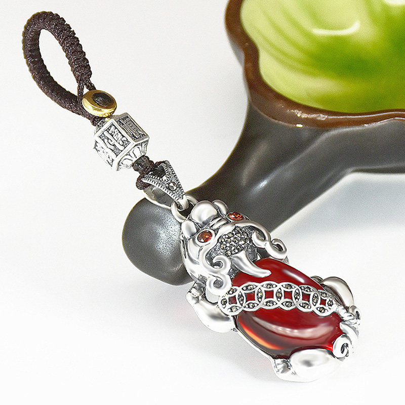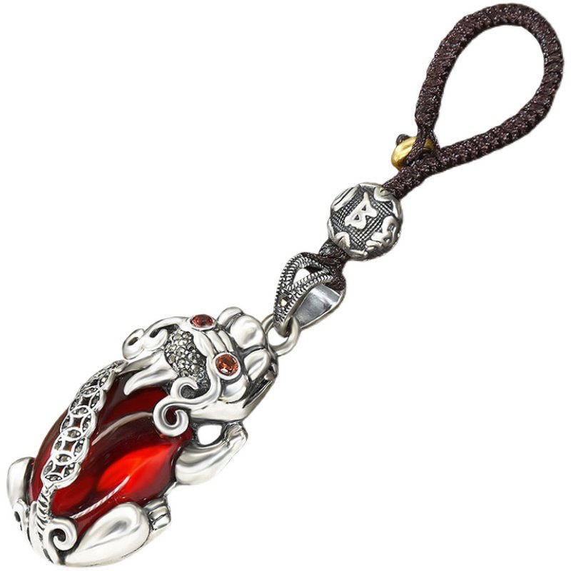 Sterling silver Pixiu keychain pendant men's and women's personality high-end car ornaments retro creative gifts for wealth and safety