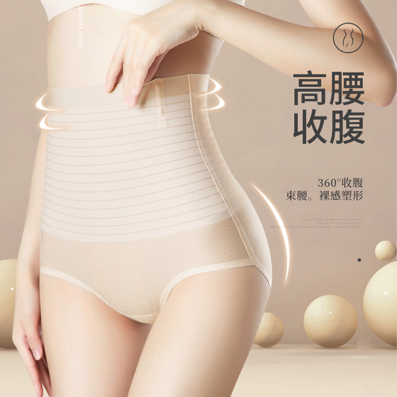 Summer Thin Ice Silk High Waist Underpants Women's Corset Waist Artifact Powerfully Shrink Small Belly Lift Buttocks Shaping Large Size Abdominal Pants