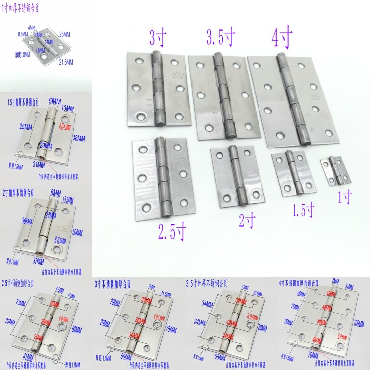 Stainless steel small hinge wood 11 door hinge clothing cabinet door flat open loose-leaf hinge five gold accessories thickened 1-4 inch