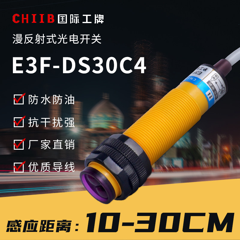 Shanghai-work diffuse reflection sensor NPN 3-wire normal open B1P1P2 infrared photoelectric switch E3F-DS30C4