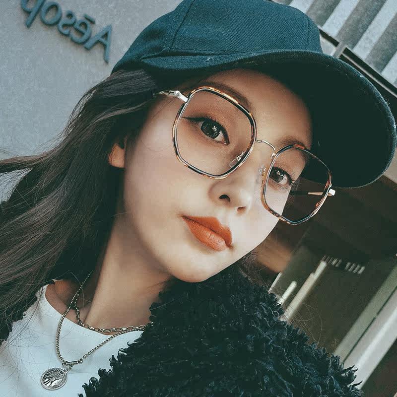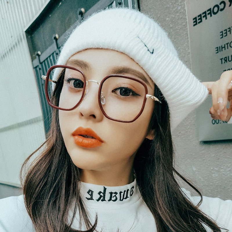 Polygonal ins wind myopia glasses female anti-blue light anti-radiation big face without makeup thin Korean version of the tide eyes flat light
