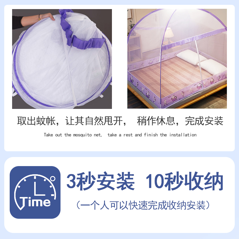 Free installation of Mongolia Pack mosquito nets without bracket Home 1 5 m bed anti-fall child thickened encryption 1 2 refolds