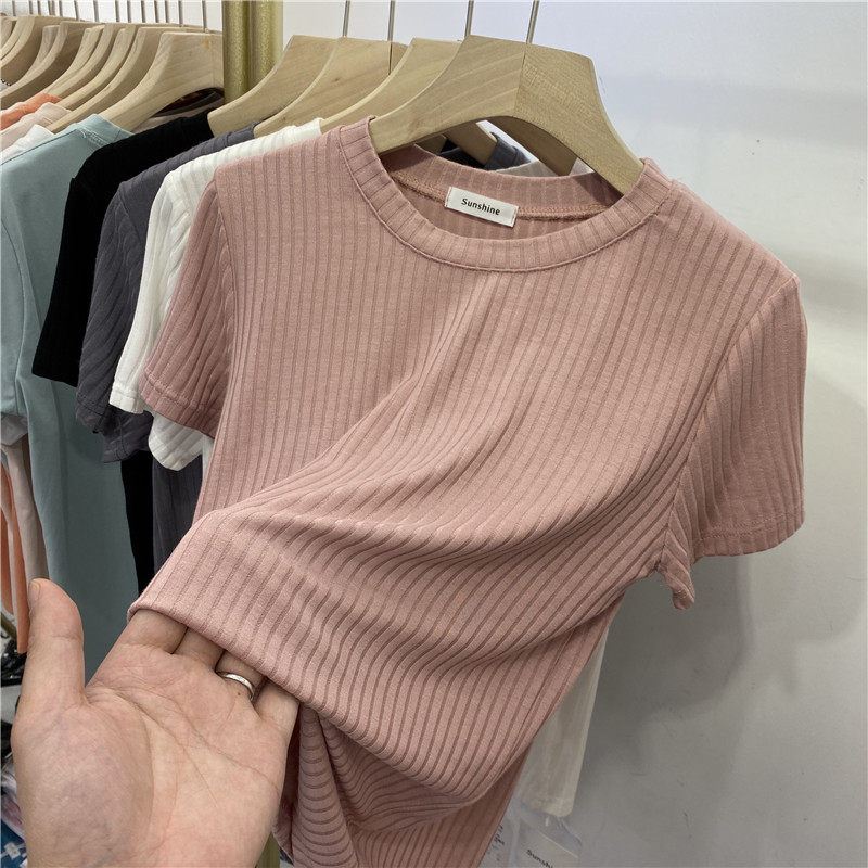 2022 - Summer - Summer - Han edition of new Han - style slim pit T - shirt with soft glutinous and comfortable blouse