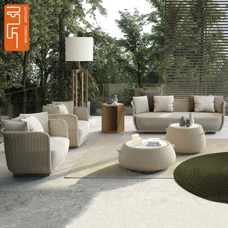 Outdoor sofa garden double rattan chair open-air sofa coffee table combination soft decoration designer outdoor rattan sofa chair
