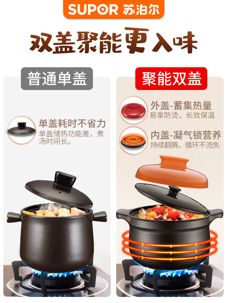 Blue 3L (suitable for 2-3 people) can stew half a chicken {2-year warranty} Orange 4 5L (suitable for 3-5 people) can stew a chicken {2-year warranty} Red 6L (suitable for