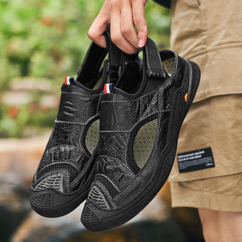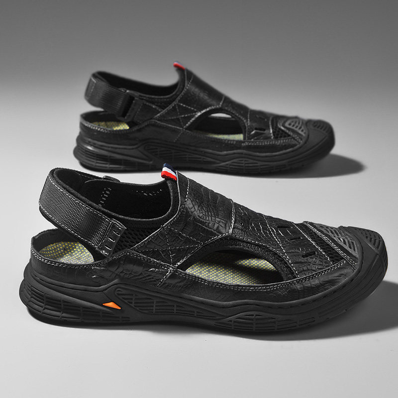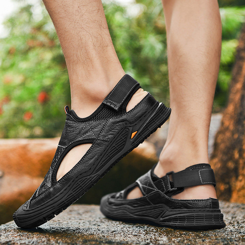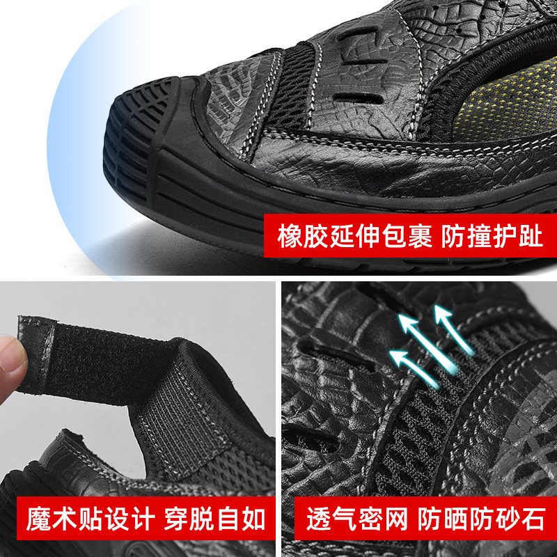 Real Leather Sandals Men 2022 New Tide 2022 Outdoor wearing Baotou Drive Seaside Beach Shoe Shoe Non-slip Soft Bottom Outdoor
