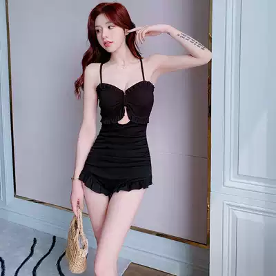 2021 new summer swimsuit women backless Net Red Belly Belly thin sexy women hot spring one-piece flat corner swimsuit women
