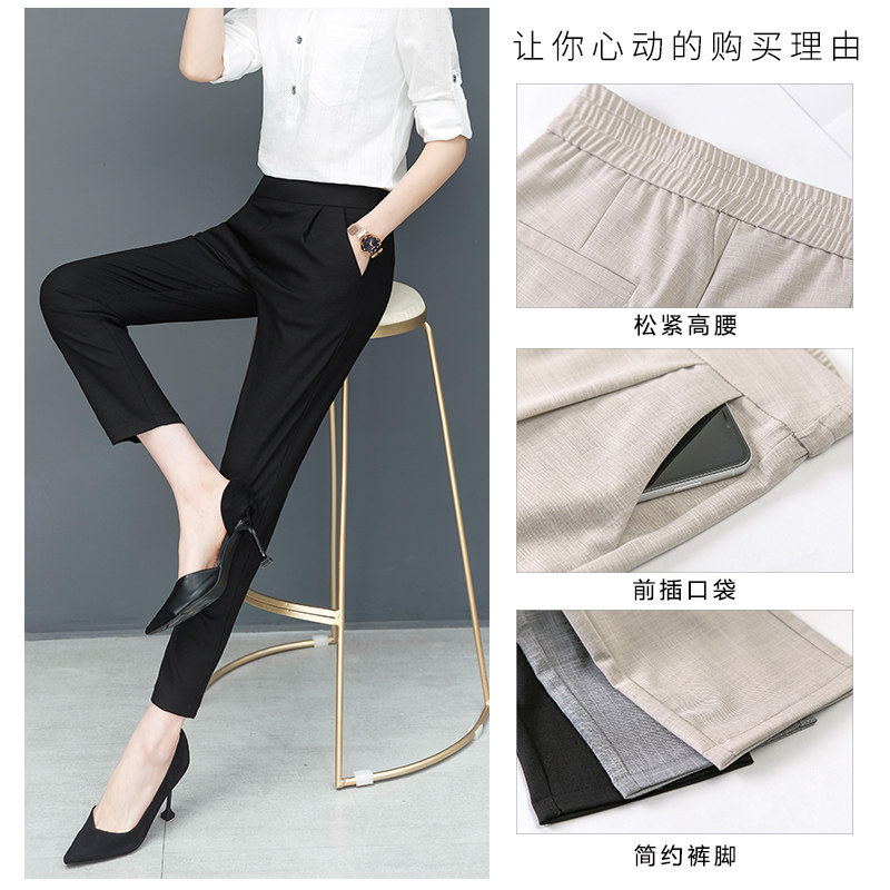 High end cotton linen suit pants woman 2022 spring summer new high waist 100 hitch OL career casual pants Harlan 90% pants