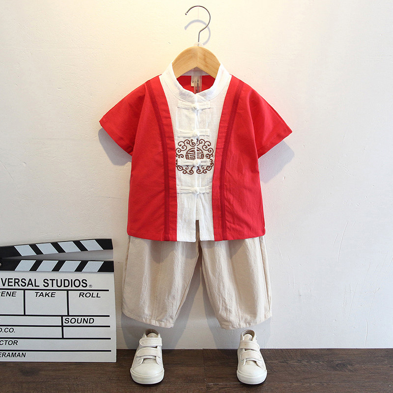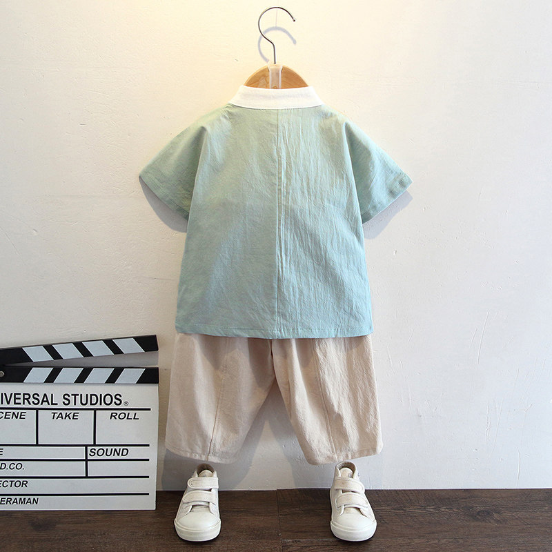 Hanfu Boy Summer Children Improved Thin section Short sleeves Down with Chinese Wind Superfairy Ancient clothes Original State Costume Summer Clothing