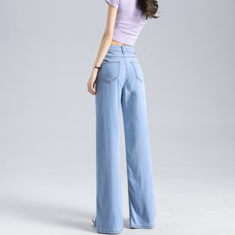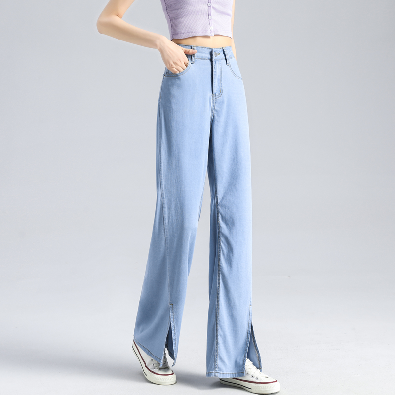 Sky Silk Broadlegged Jeans Women's Summer Thin 2022 New high waist straight cylinder loose ice silk open fork tug pants