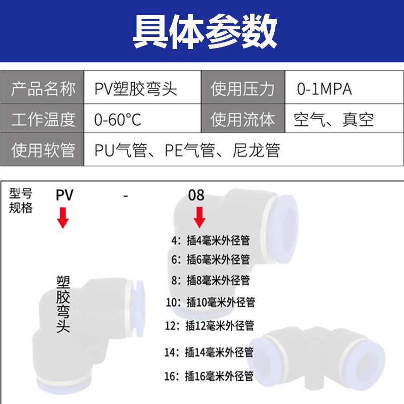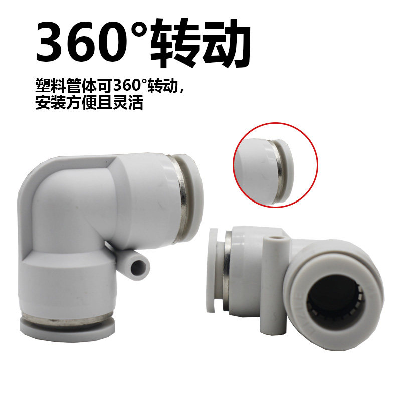 Pneumatic tube white plug and straight angle elbow two-way quick joint PV4 6 8 10 14 16 MM