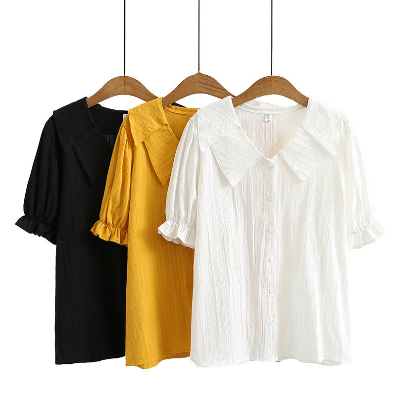 2021 pregnant women summer new loose maternity shirt double-layer lotus leaf collar lantern sleeve jacquard short-sleeved shirt top