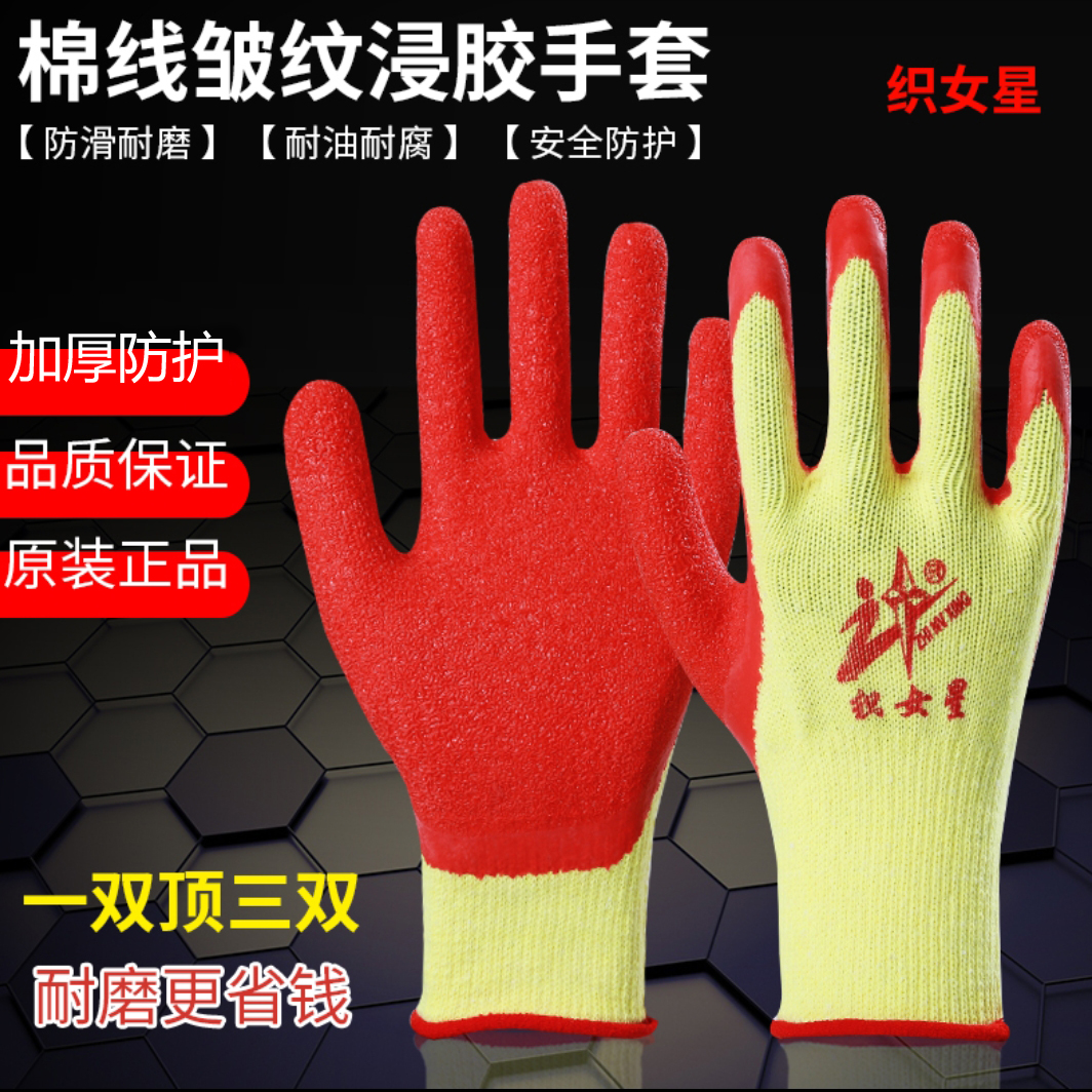 Weaving female rubber gloves wear resistant and thickness workplace anti-cutting glass factory oil anti-slip coating rubber