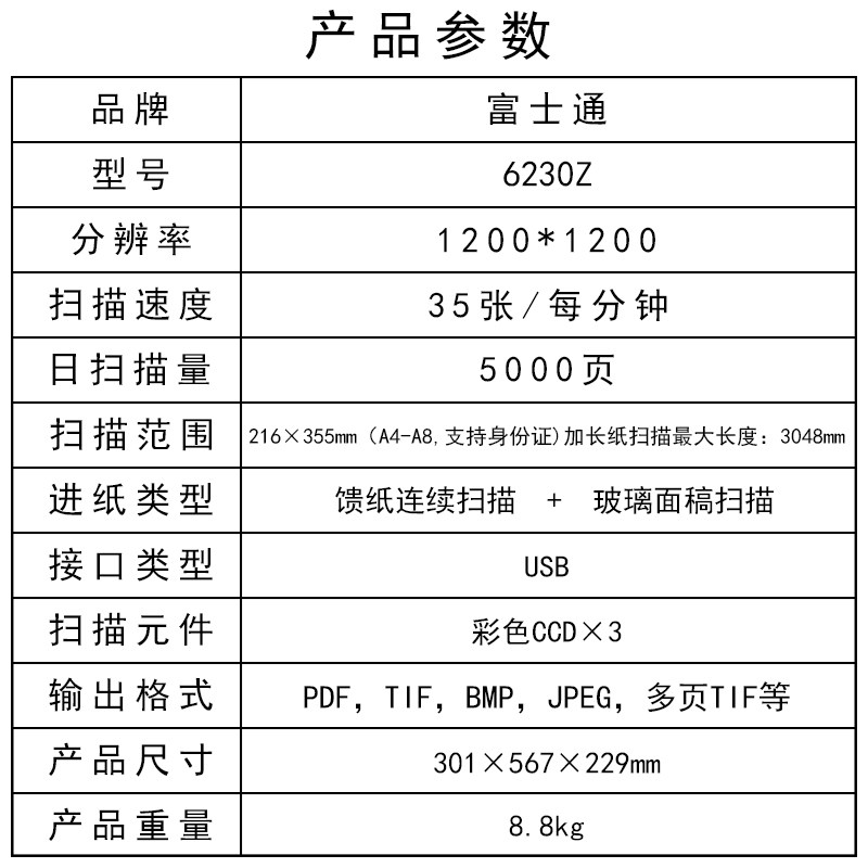 Fujitsu fi-6230 scanner HD professional office documents double-sided color automatic batch speed scan