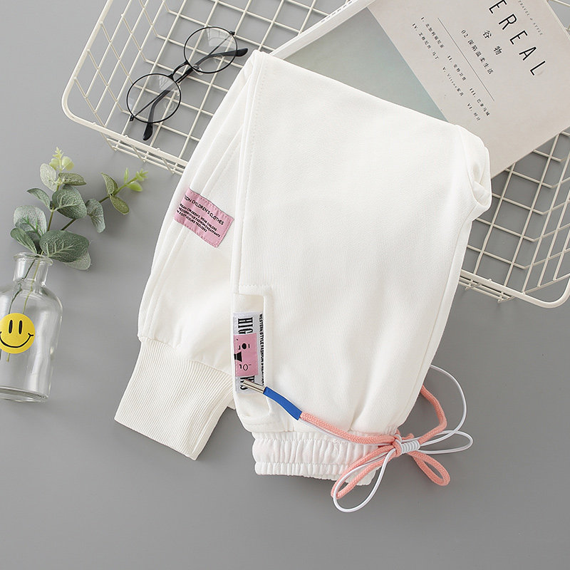 Girl White Sweatpants Spring Autumn style 2022 Korean version Long pants Children's sports pants loose CUHK Tong parenting casual