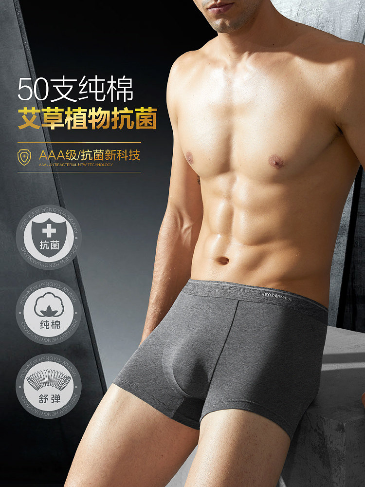 Hengyuan Xiang Men's Underwear Men's Pure Cotton Four-corner Pants Summer Breathable Full Cotton Antibacterial Four Corner Pants Guys Big Size Pants Head