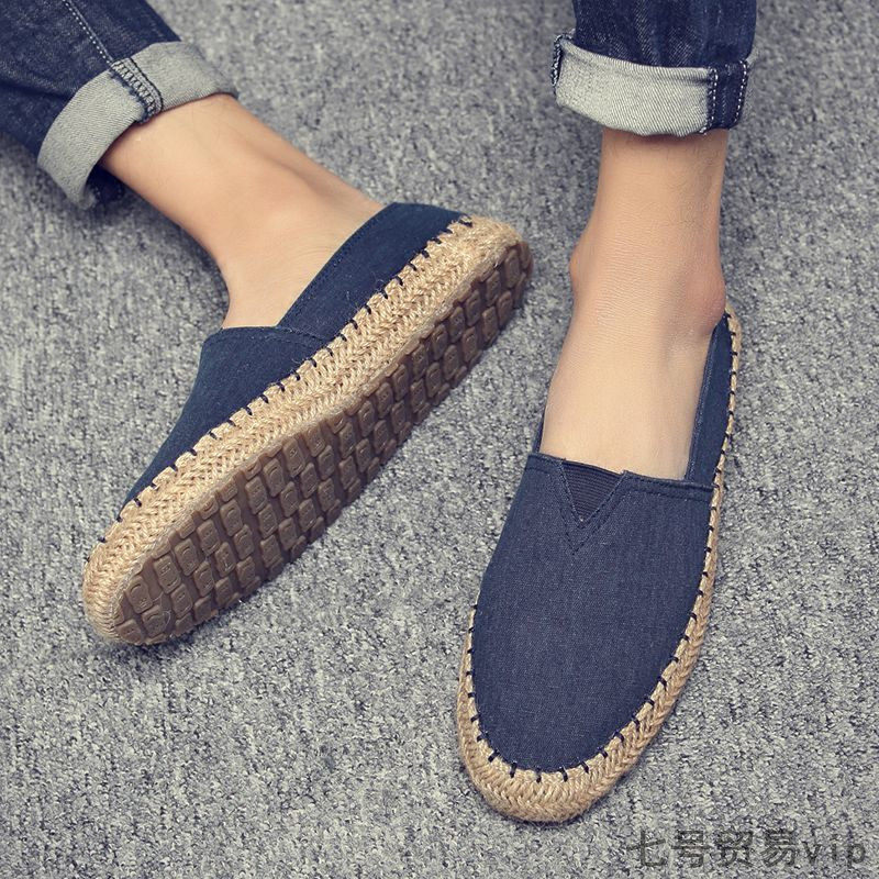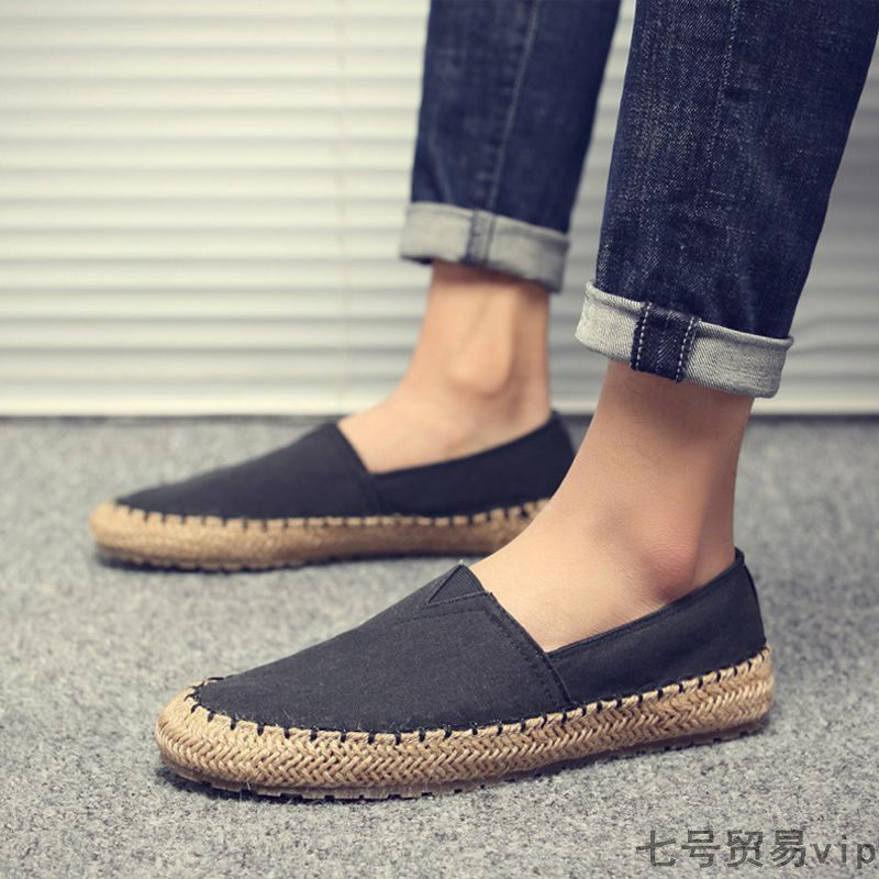 Linen breathable lazy leisure shoes male Chinese female wind spring one foot canvas shoes large-scale retro fisherman shoes