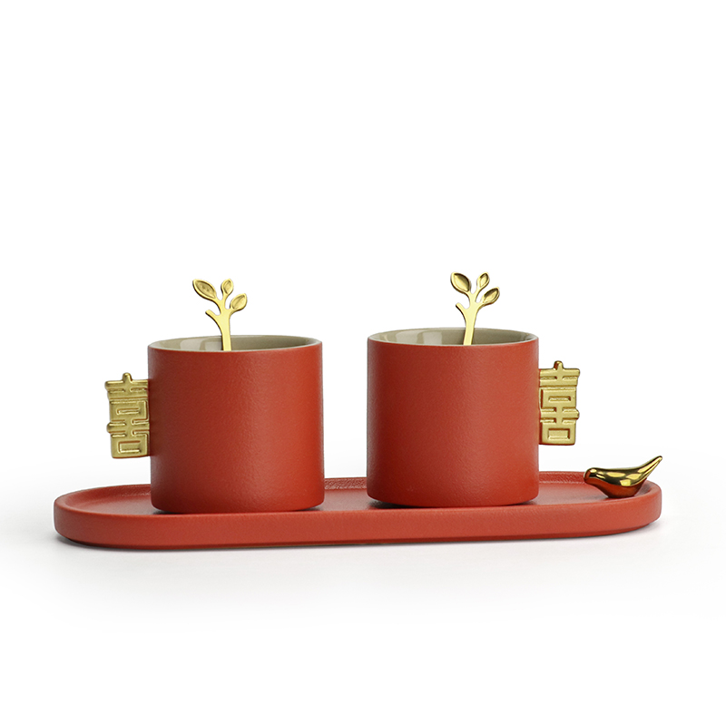 Gongxi coffee cup pair, spoon, magpie gift plate gift box]