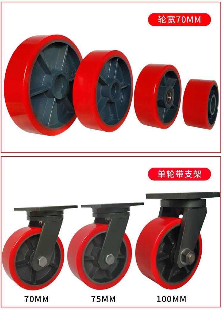 Super heavy-duty polyurethane caster universal wheel iron core pu wheel iron wheel push wheel flat 4 5 6 8 inch large wheel