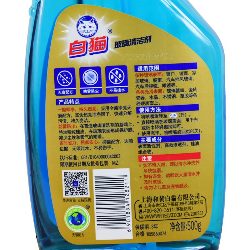 White cat glass cleaning agent 500g polished window bathroom glass water scale detergent window decontamination brightener home car