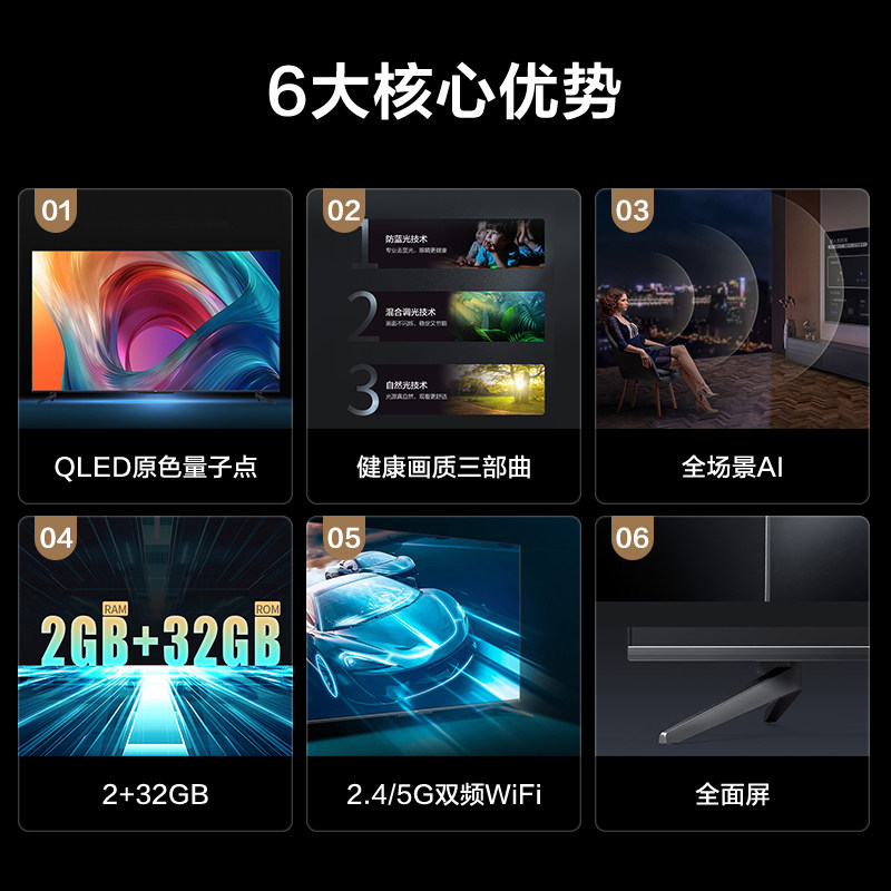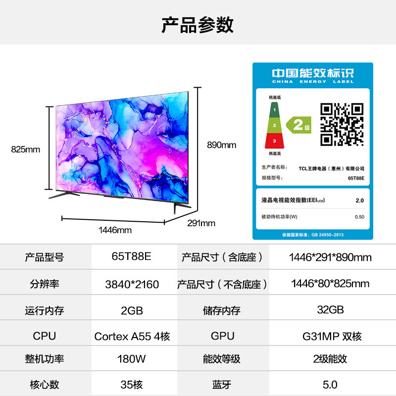 TCL 65T88E 65-inch 4K HD ultra-thin quantum dot full screen voice-activated network flat panel LCD TV