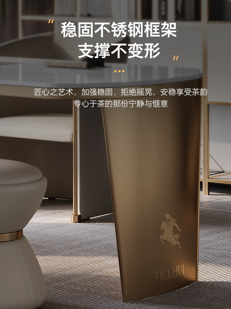 Gold-plated titanium tea table (180cm) host chair guest chair 4