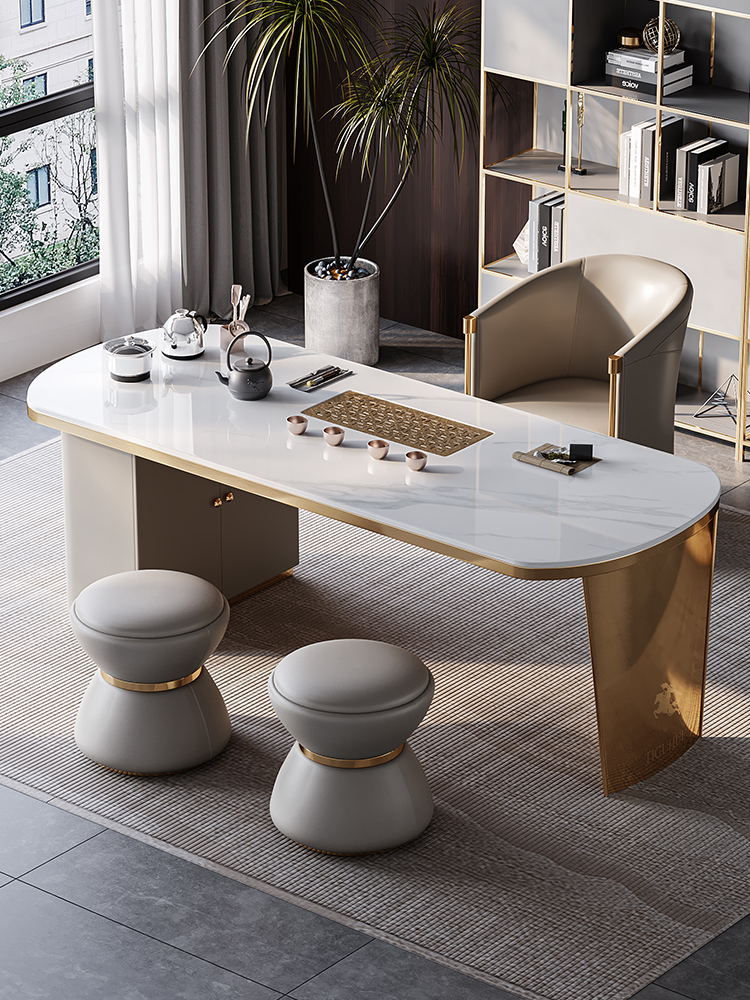 Light luxury tea table home tea table desk integrated dual-purpose high-end rock slab modern tea table simple modern long tea table