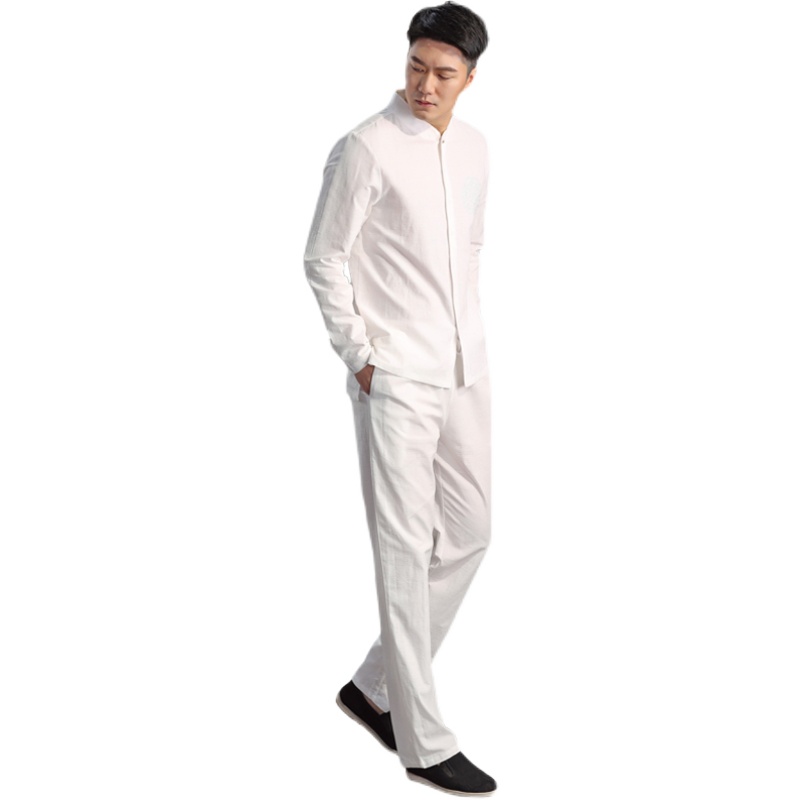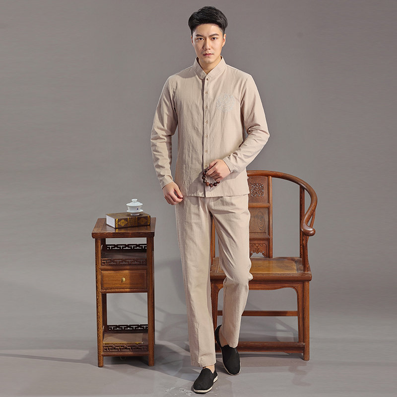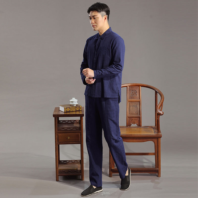 Spring Autumn Tangled Men's Cotton Jacquard Suit Plays Out of Long Sleeveless Chinese Wind Neckline Jacket Middle Aged Dad Clothes