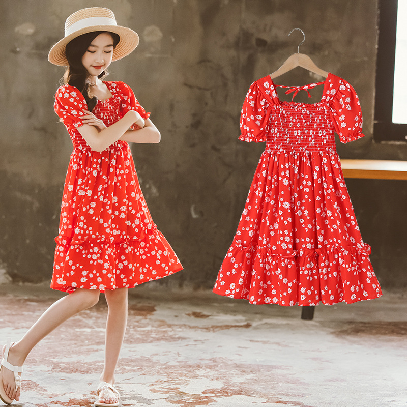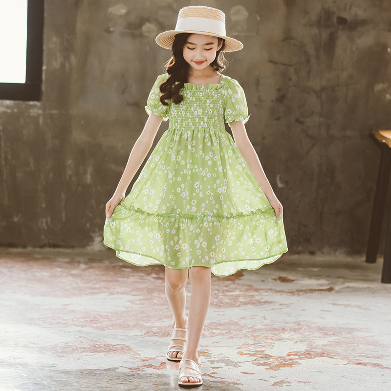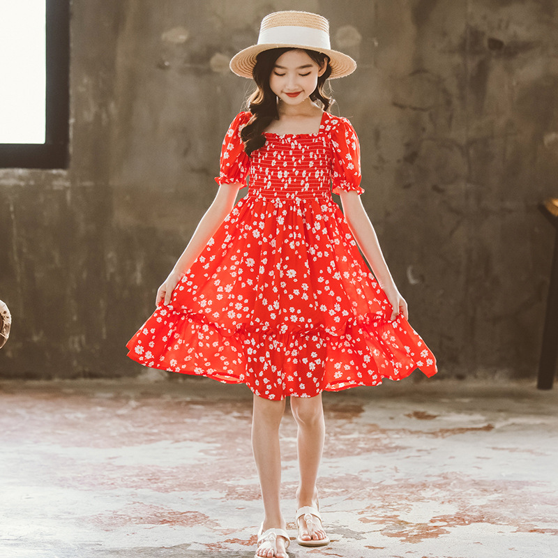 South Korea's new summer girls' chiffon dress children's suit short-sleeved floral skirt in the big boy's western style princess skirt tide