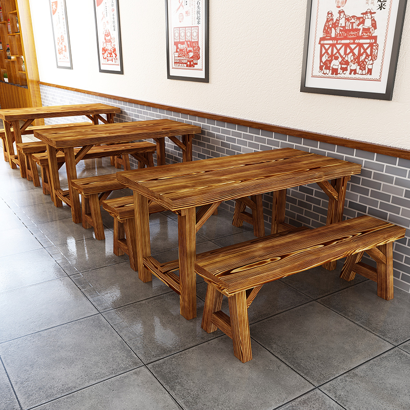 Pure Solid Wood Noodle Gallery Table Hotel With Hot Pot Barbecue Breakfast Restaurant Economy Type Fast Food Small Eating Shop Dining Table And Chairs Combination