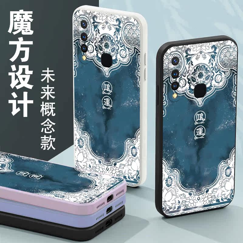 Hongyun mobile phone protective shell vivoY5S Guochao Tidal Retro Palace Vivo China Wind Creativity Y9S Right Angle Side Y19 Magic Square New Liquid Silicone Square full package soft shell ultra-thin anti-fall frosted individuality cover