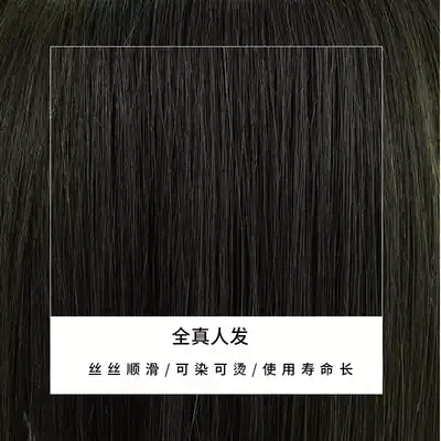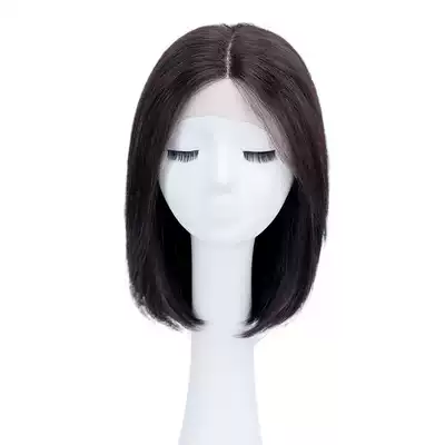 Wig long female hair real hair fluffy natural bobo head lace modification round face real hair silk collarbone hair wig set