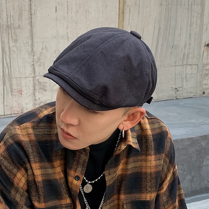 Japanese black octagonal hat boom boom before the painter's tongue cap beret man in summer thin style