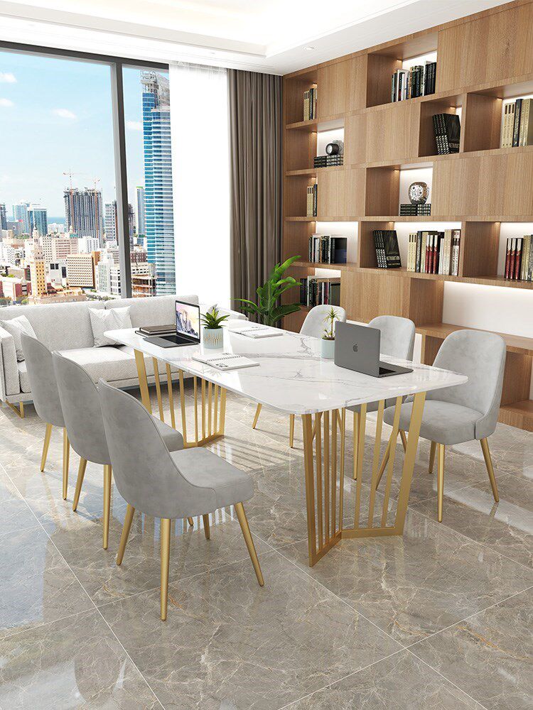 Nordic Marble Desk Modern Minimalist Conference Table Long Table Light Extravagant Bench Reception Guests Negotiate Table And Chairs