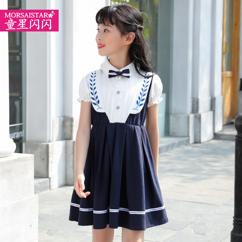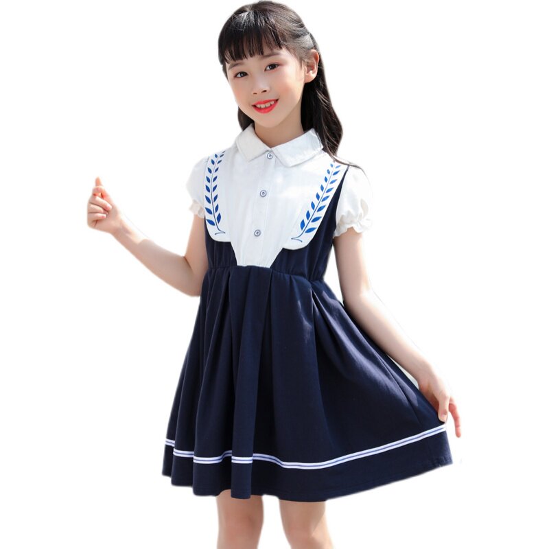 Girl Summer Dress Foreign Dress 2021 Summer New Children's Academy Wind Princess Dresses Girl Clothes Short Sleeves