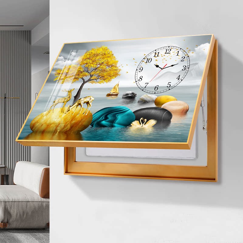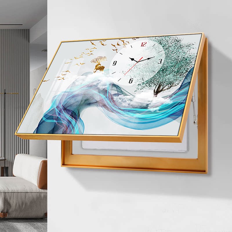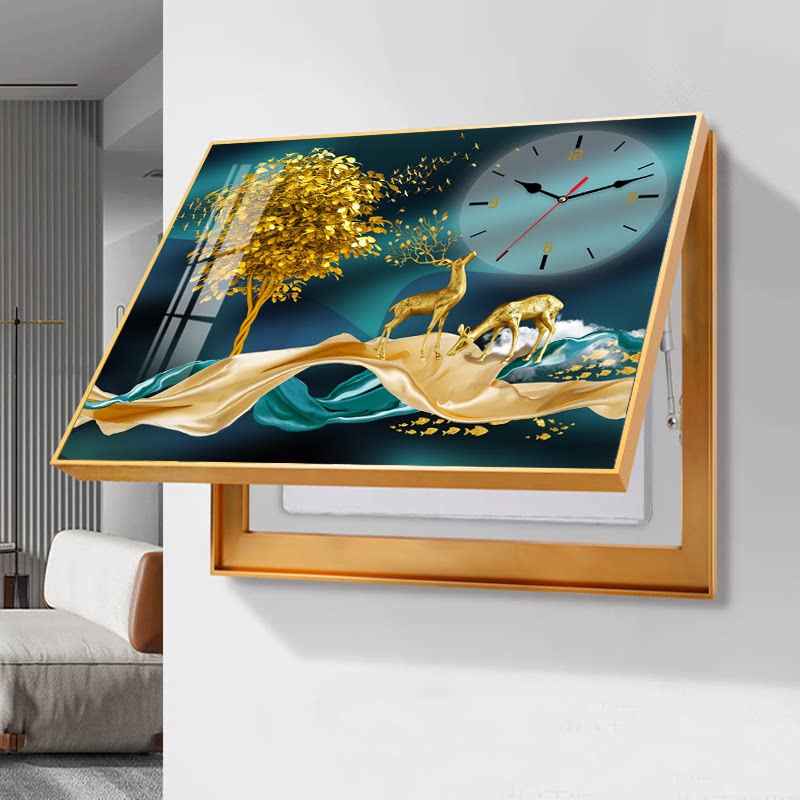 Punch-free meter box light luxury hydraulic decorative painting wall clock living room crystal porcelain painting blocking dining room painting Nordic elk