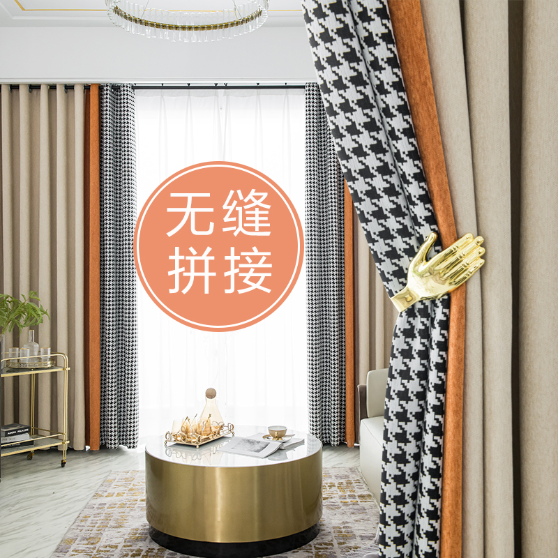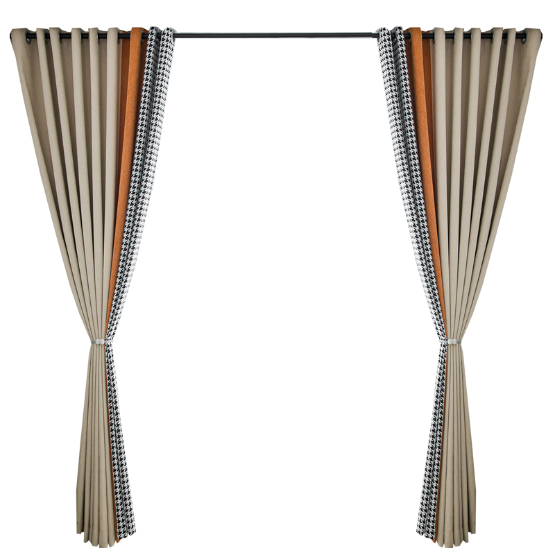 Houndstooth curtains-beige with orange houndstooth curtains-grey with orange matching houndstooth curtains-white curtains