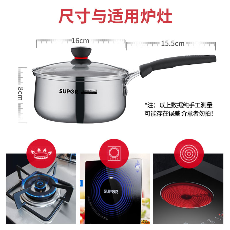 Supoir milk pan baby deputy food stainless steel thickened non-stick gas stove cooking bubble pasta hot milk small soup pot home