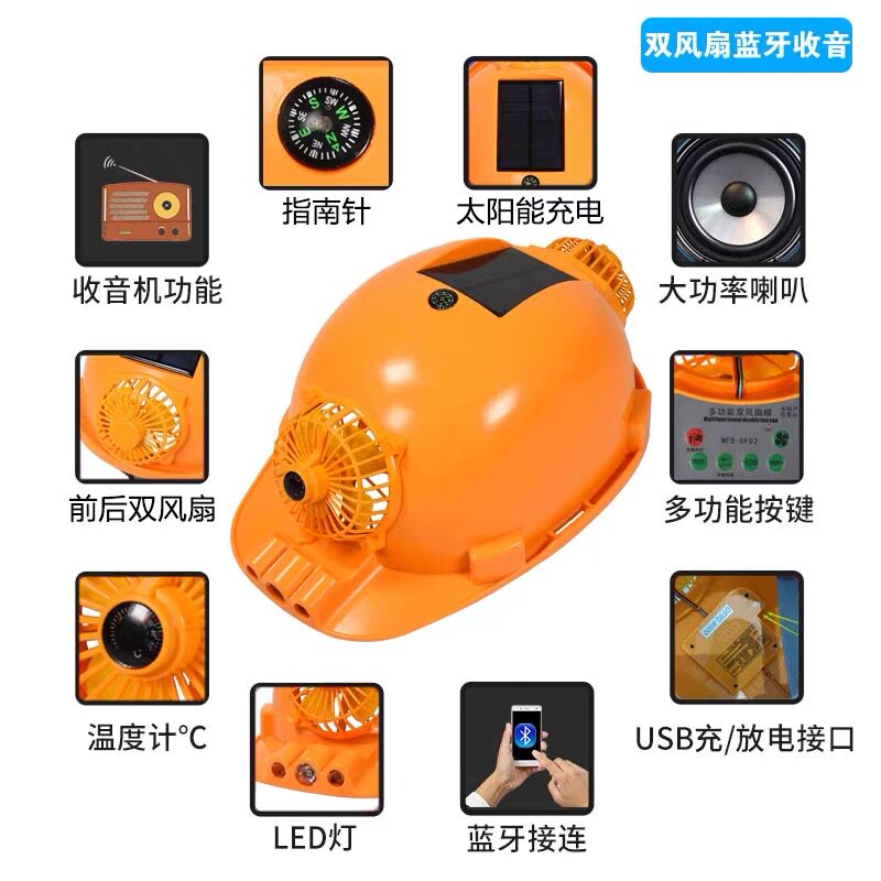 Double Fan Air Conditioning Version Refrigeration Solar Safety Site Cap Cooling Electric Fan Cap With Fan Cap Adult Charge
