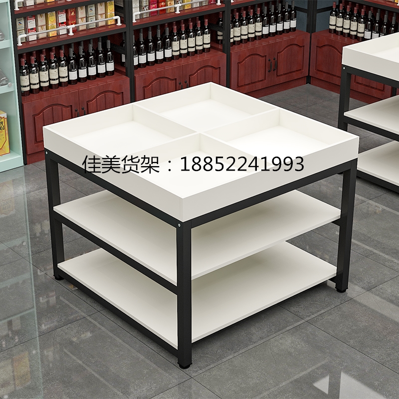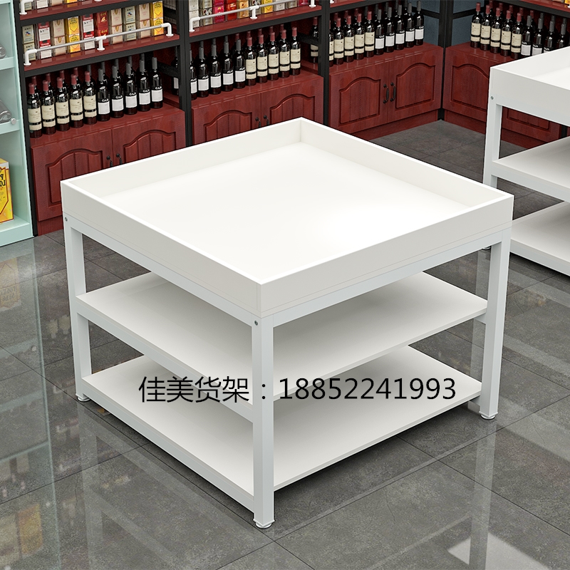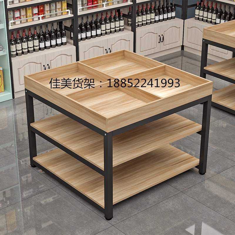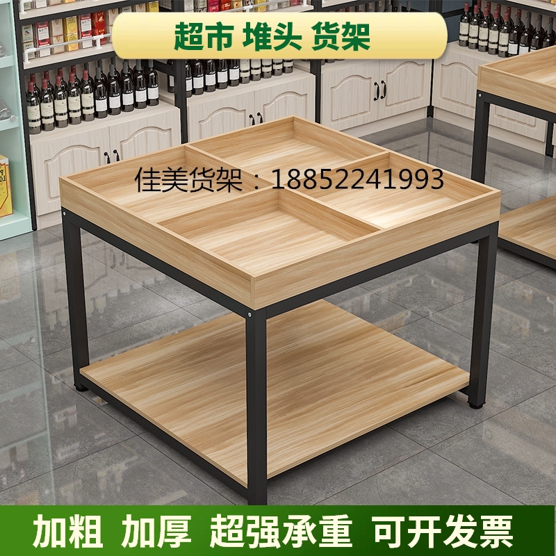 Supermarket pile head rack steel wood milk grain oil ground Pile fruit display table gift box pile rack three-layer promotion table