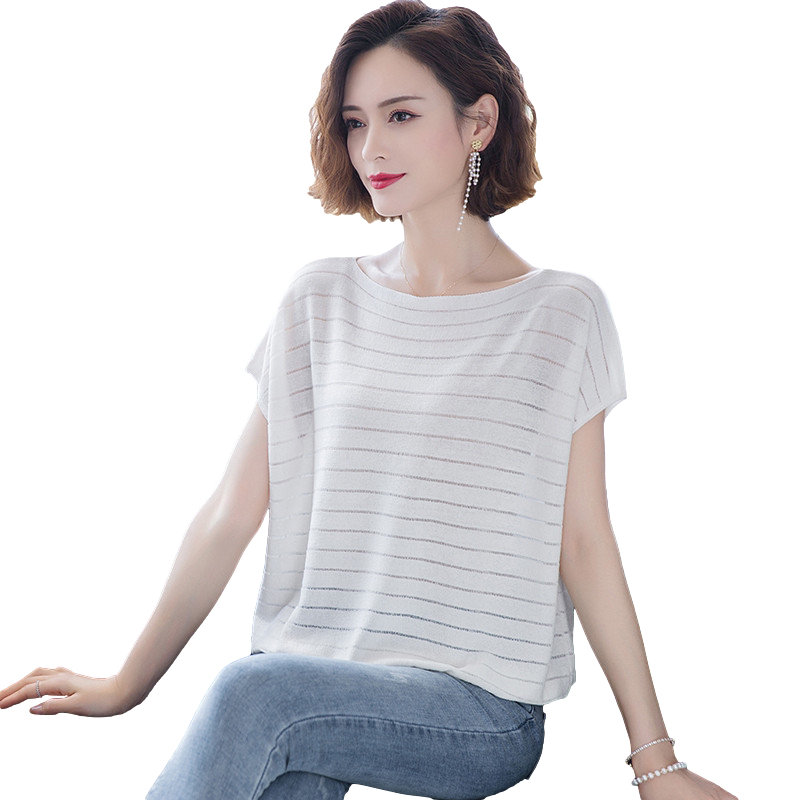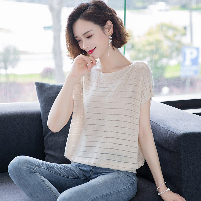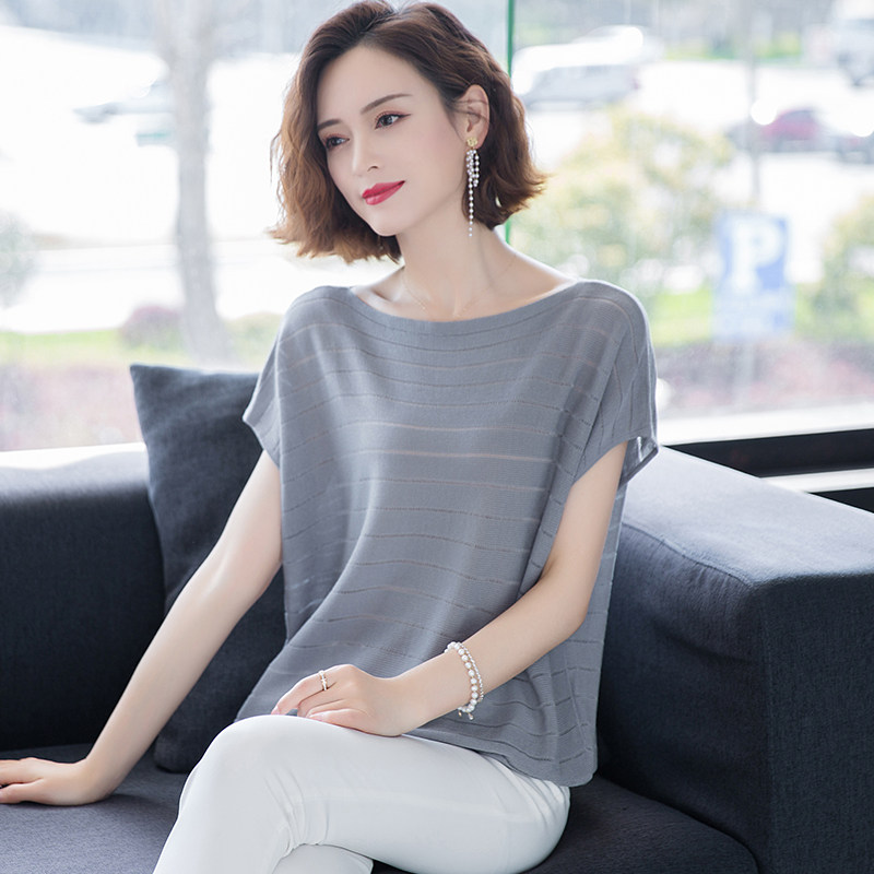 Dittudun Ice Silk Knit Short Sleeve T-Shirt Woman Dress Summer Dress 2021 New Loose Foreign Pie Mother Cover Tummy Carditis