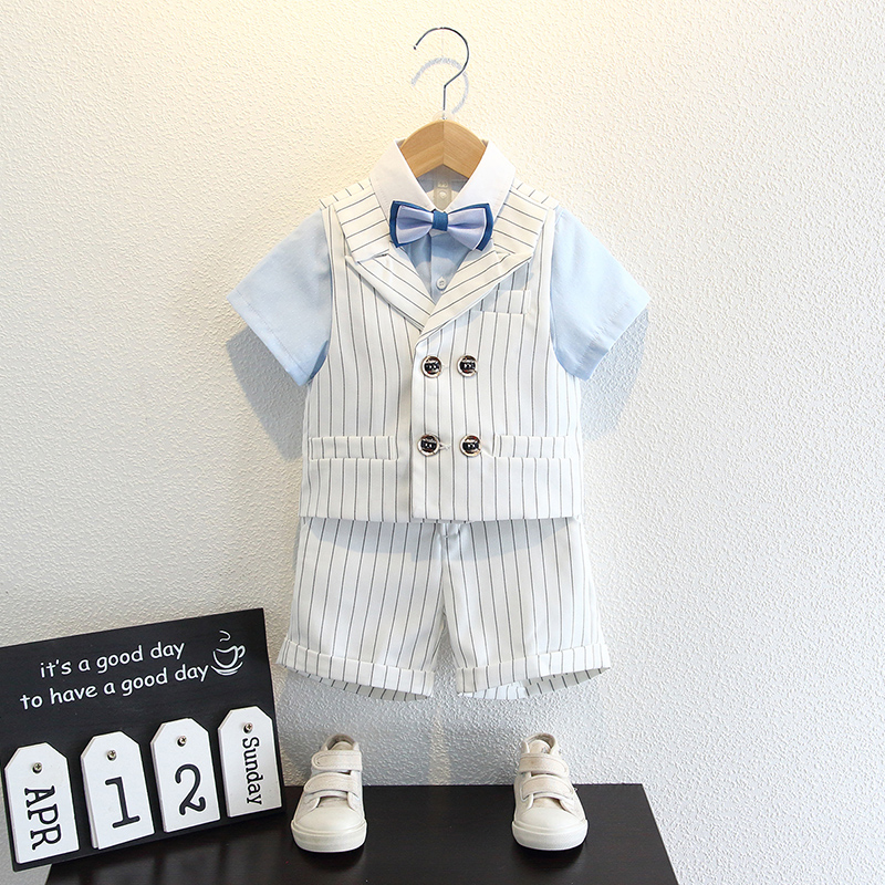 Boy suit suit Children's suit Short sleeves Summer Playboy dress Inlenwind Wind Children is holding the show