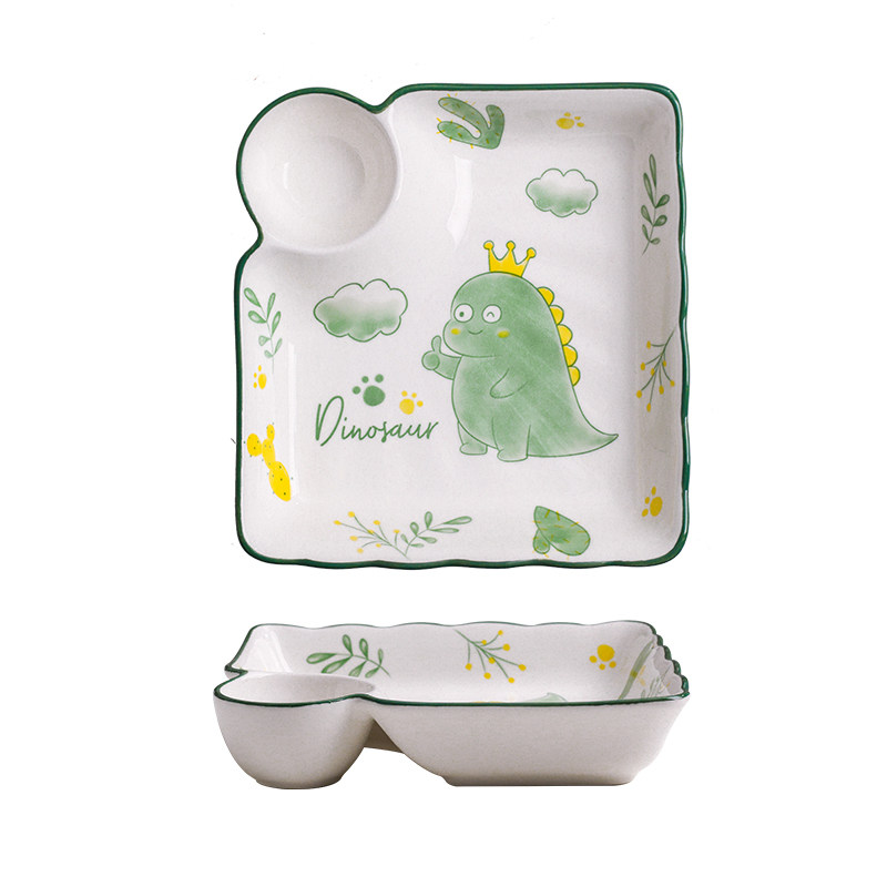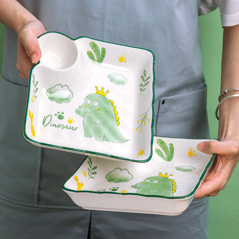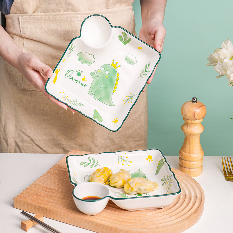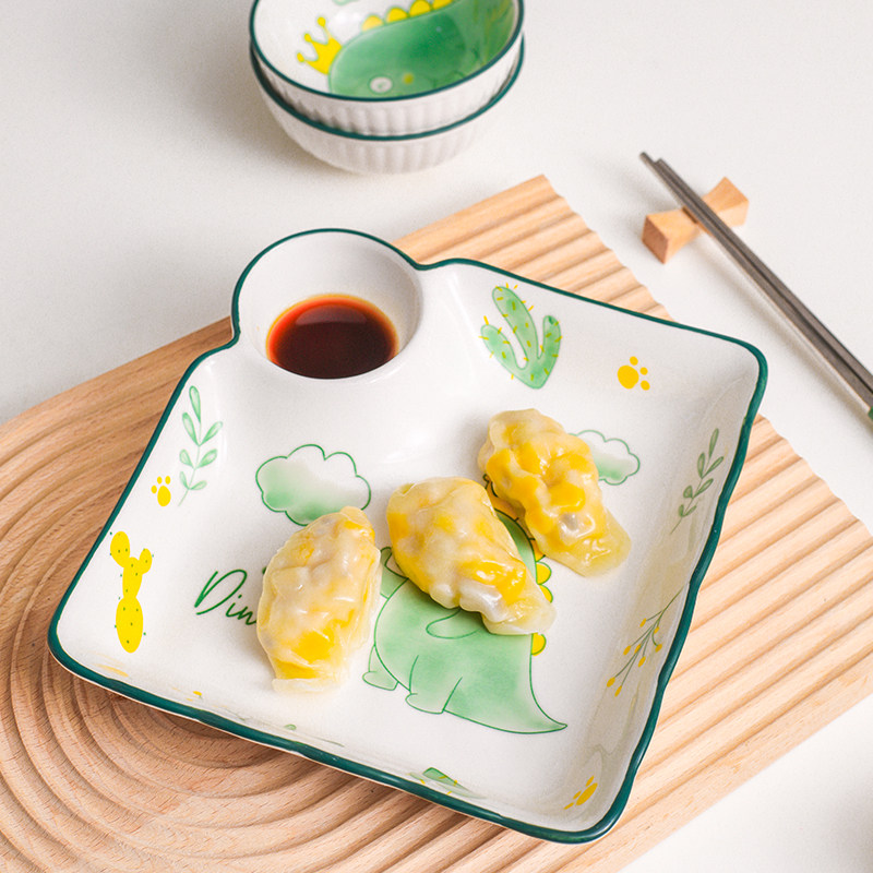 Baby dumpling plate with vinegar plate ceramic compartment plate creative Japanese tableware household square dumpling plate tray