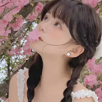 Cute cat asymmetric ear clip 2021 New tidal girl earless summer model Japanese girl earrings