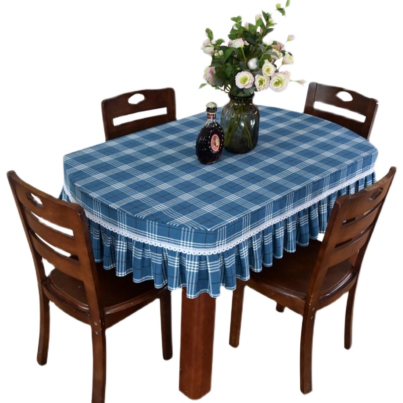 Brief Oval Table Cloth Folding Round Table Home Table Cloth Table Cloth Dining Room Light Lavish Tea Table Hood Cover Full Bag Blue