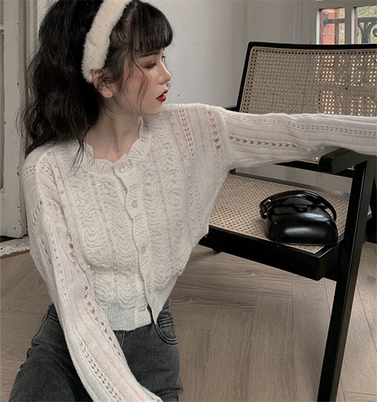 Retro Pearl Pearl Collage Hollow Knitted Sweater in 2022 a new short - pin knitted sweater