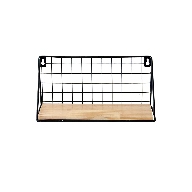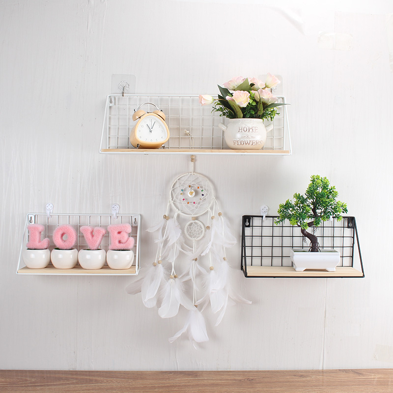 Non-perforated wall shelf creative wrought iron wall hanging bedroom wall hanging basket one-character partition storage shelf shelf