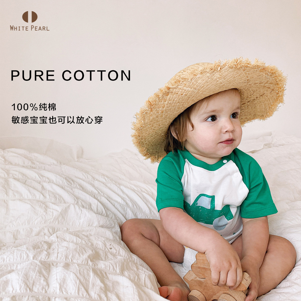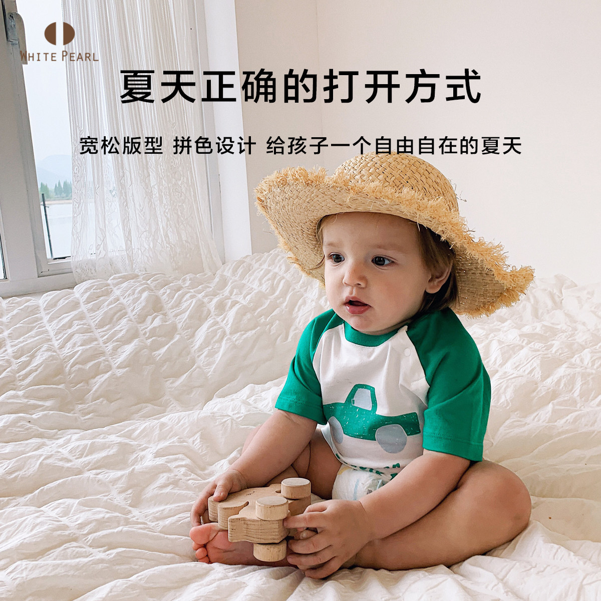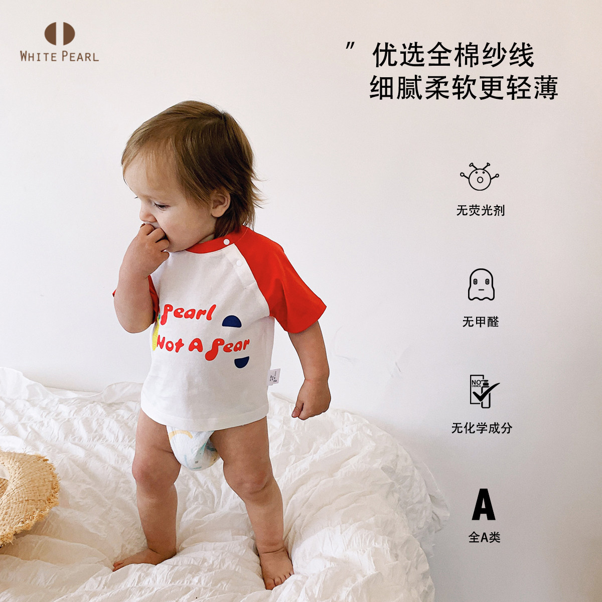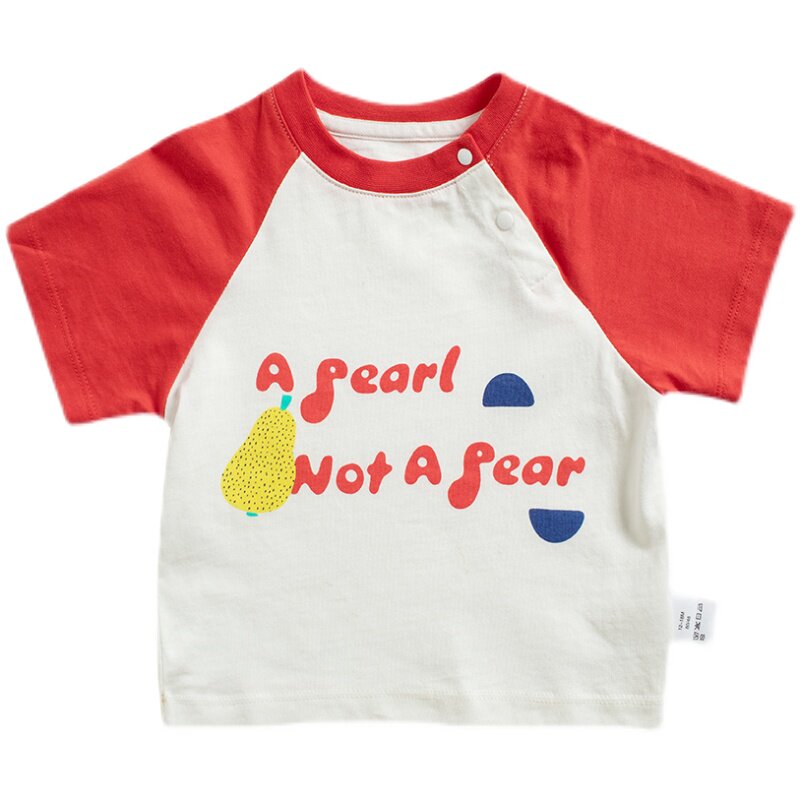 White Pearl baby baby cotton sweat cloth round colour printing short sleeve T-shirt