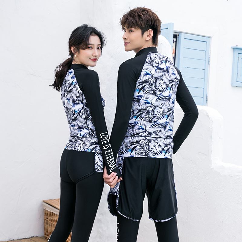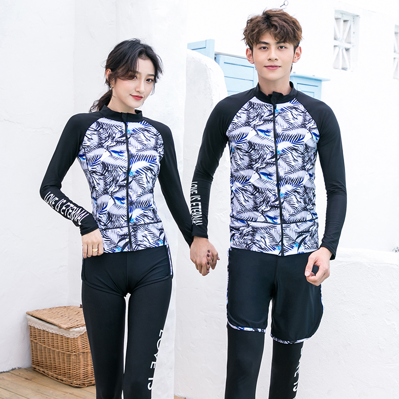 Korean two-piece trousers Long-sleeved swimsuit Women's sunscreen quick-drying surf suit Men's wet suit Female couple parent-child jellyfish suit