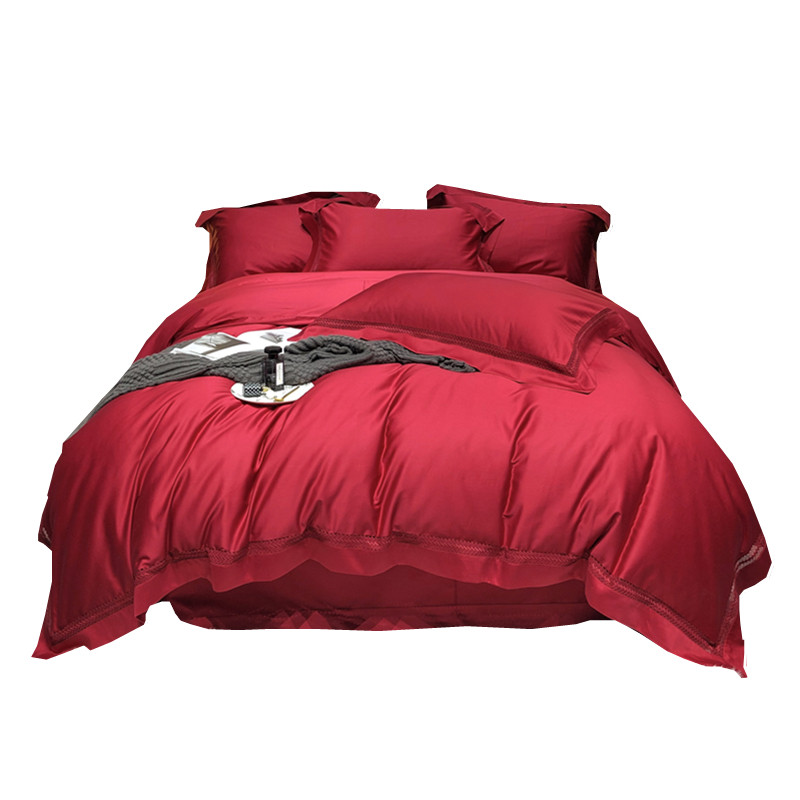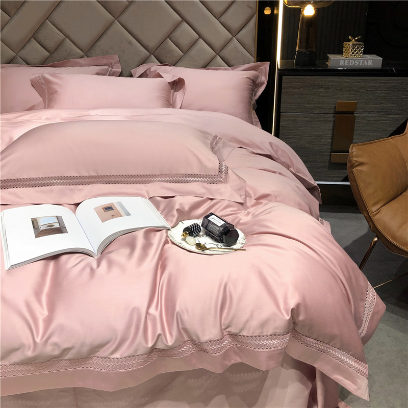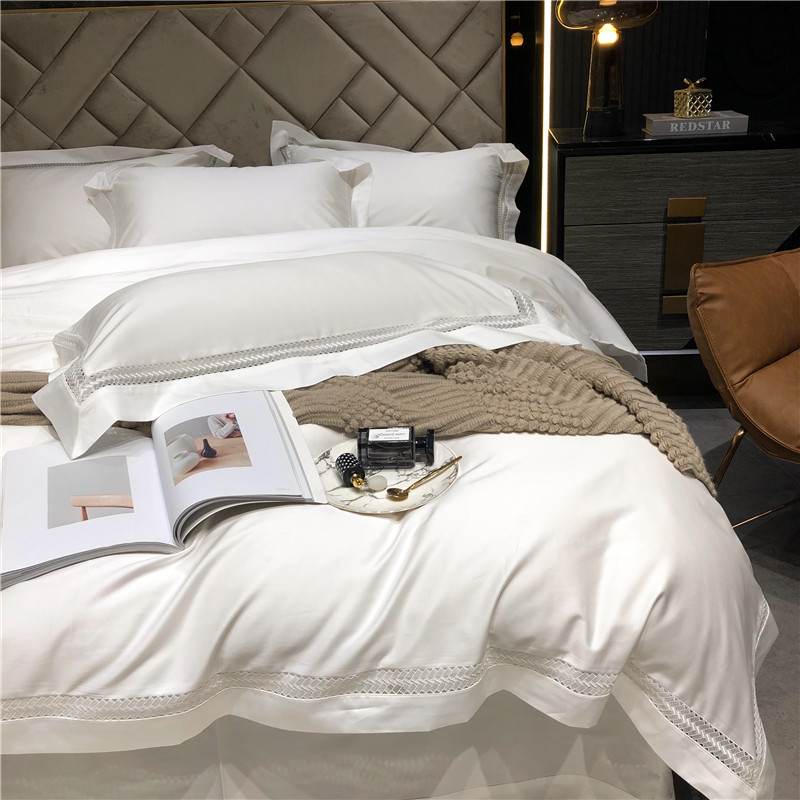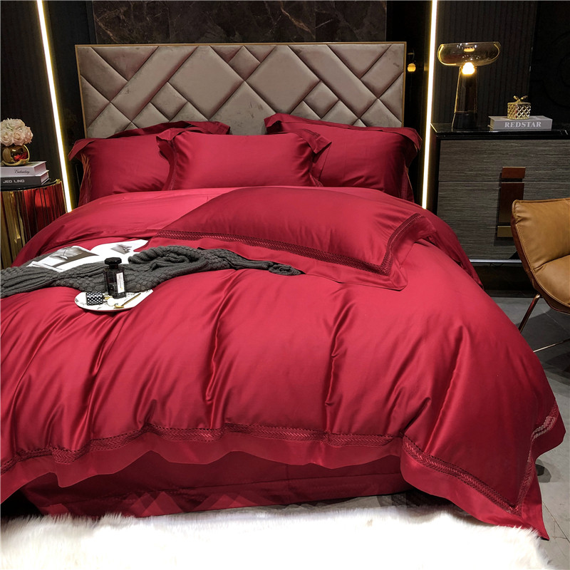 Upscale 140 full cotton hollowed-out edge four sets minimalist about 120 long suede cotton pure cotton wedding wedding room bed bedding